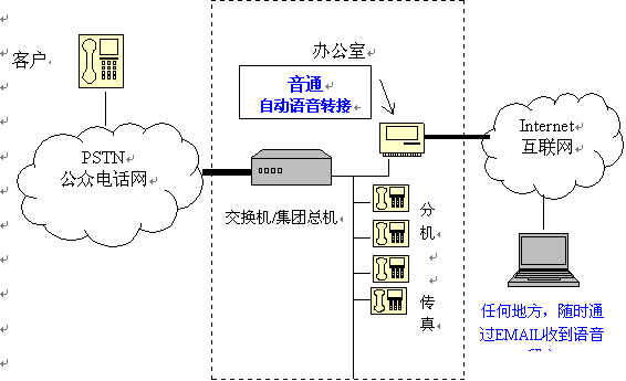 - 任何地方打開你的電腦,就能收到你辦公室內的語音留言,