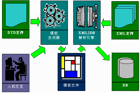 - InfOnCall的XML2DB工具它提供了一套相對比較完整的圖形化工具。用戶只須提供DTD文件即可而不必提供語法復(fù)雜的Map文件。這就意味著用戶可以采用多種圖形化工具通過可視界面來完成DTD文件的編輯而不必去涉及復(fù)雜的映射語法規(guī)則。