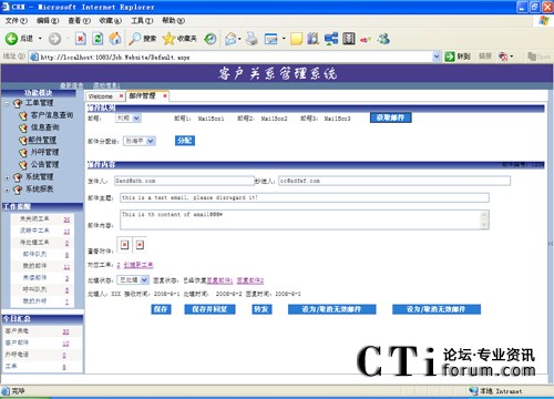 系統(tǒng)支持多個郵件隊列的管理,用戶可以根據業(yè)務的需要在系統(tǒng)管理中進行郵箱設置。同時系統(tǒng)也支持多種模式的郵件處理,系統(tǒng)自動分配、組長手動分配以及座席手動獲取,以適應不同業(yè)務的需要。