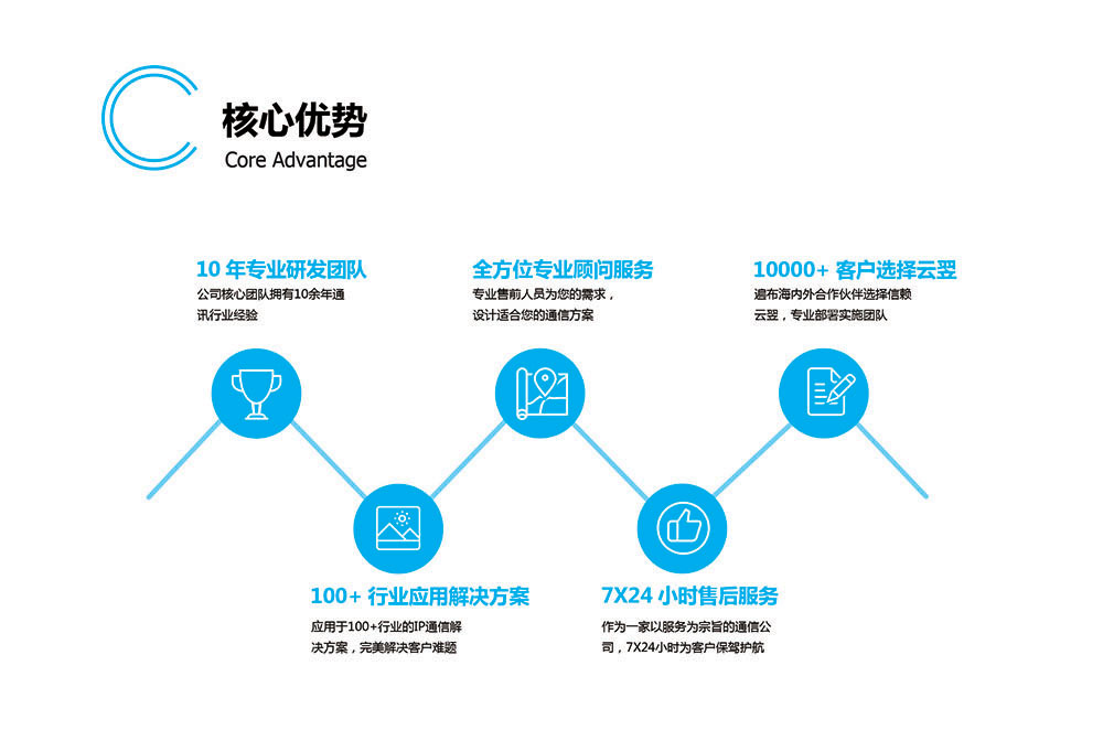 云翌通信一直秉承著"用最簡單的方法,最踏實的態(tài)度,為用戶創(chuàng)造最大的價值"為發(fā)展理念,致力于成為國內IP通信行業(yè)第一品牌,為客戶提供放心的通信產品及服務。