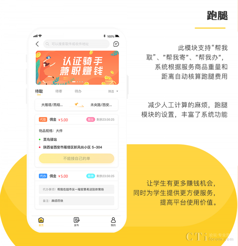 大家都知道,大學(xué)校園人群密集,很多大學(xué)的在校學(xué)生高達幾萬人,且大學(xué)生消費力和消費意愿均遠高于一般人群,同時大學(xué)生代取快遞、代送外賣、代簽到等服務(wù)的需求很大,大學(xué)的跑腿服務(wù)市場是很大的。校園創(chuàng)業(yè)不僅需求旺盛,同時商家和用戶都有著高度聚集的特點,針對校園學(xué)生群體,做校園外賣平臺值得推行。